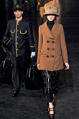 As modelos incorporaram as mulheres da aristocracia e ocuparam todo o cenário do trem trajando casacos alongados, roupas ricamente bordadas e segurando bolsas com estampas de animais. (Leia também sobre Como Escolher o Decote Certo).