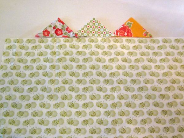 Logo após, posicione a aba com triângulos sobre a parte do direito da frente da almofada.