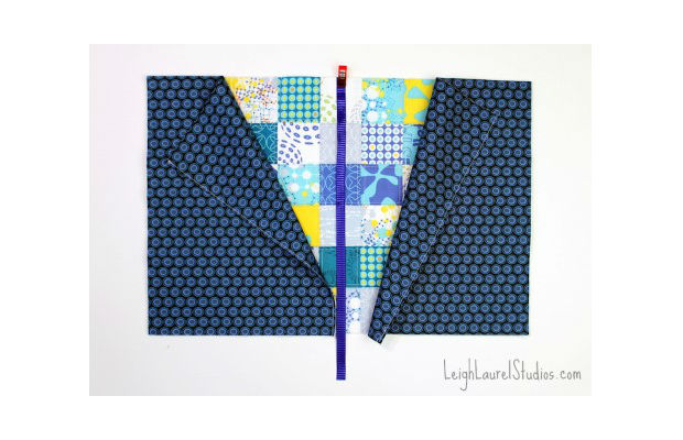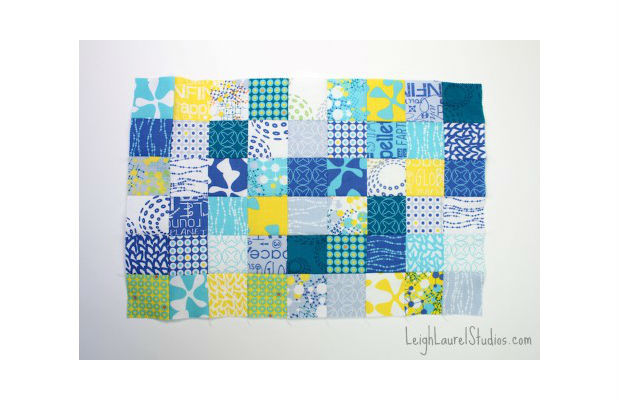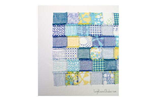 Você deverá costurar linhas em todos lados dos quadrados, como na imagem acima.