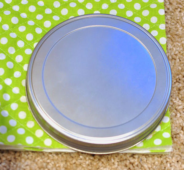 Depois de cortar esse tecido, com a ajuda de uma tampa redonda, corte as pontas do material, conforme na imagem acima, deixando-as arredondadas.
