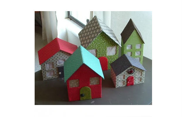 Essas caixas podem ser transformadas em lindas casinhas, forradas com tecido.