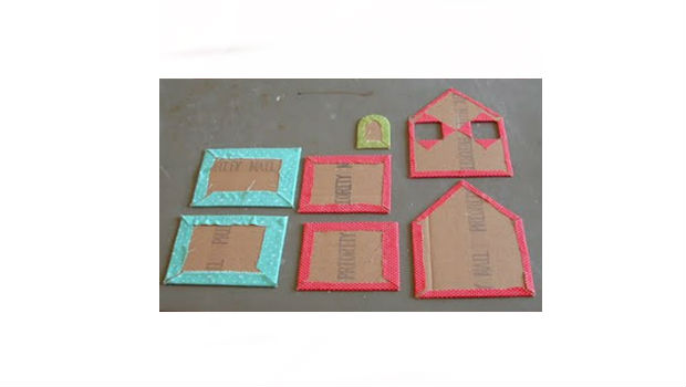 A seguir, forre essas partes da casinha com tecido. Utilize cola para não correr o risco desse tecido soltar depois que a casinha já estiver montada.