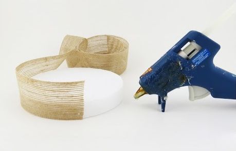 Comece separando todos os materiais que você vai utilizar em seu artesanato. Depois desenhe na folha larga de isopor um círculo com o tamanho de sua preferência. E então, encape as laterais do seu círculo de isopor com a fita larga de juta e colando a fita com o auxílio da pistola de cola quente. Deixe secar.