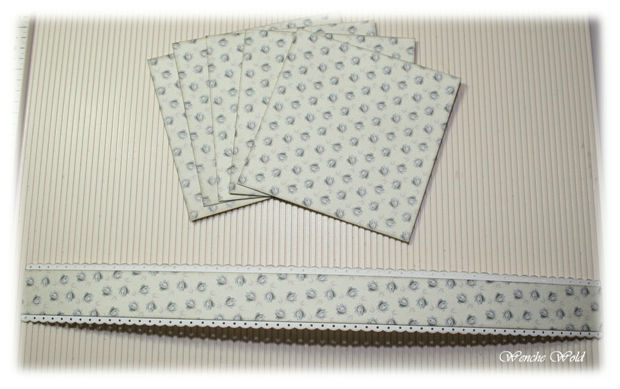 Corte 5 peças de papel no tamanho 9,5 cm x 9,5 cm para o interior da cestinha.