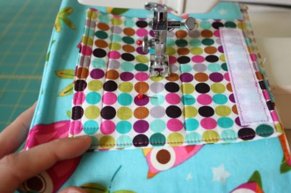 Logo após, costure esta peça na parte de trás da cestinha, esta parte servirá para prender a cestinha na bicicleta.