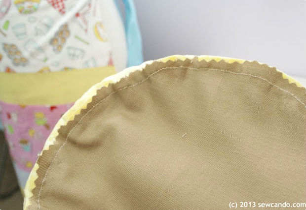 A seguir, prenda também o círculo de sarja.