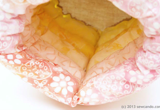 Logo, vire o seu tecido, tirando-o do avesso e acrescente os cabos dentro do seu material.