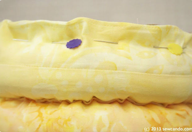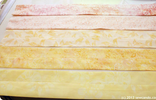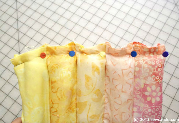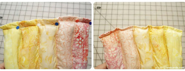 Junte suas tiras, uma ao lado da outra, como na imagem acima, prendendo-as com alfinetes.