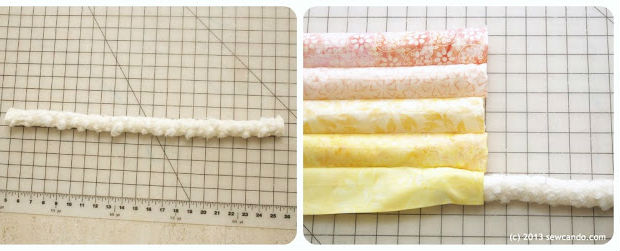 Corte os cabos de tubulação de acordo com a medida das suas tiras de tecido costuradas.