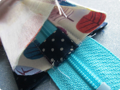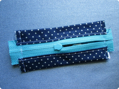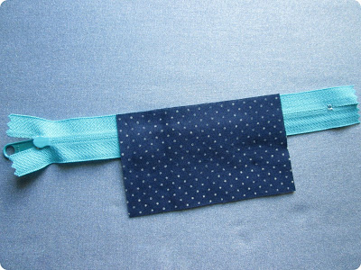 Em seguida, posicione outro retângulo sobre o zíper, mas com o lado do direito para baixo. Costure.