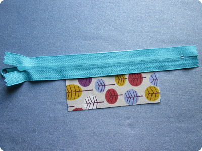 Logo após, arrume as partes, deixando a costura alinhada com o zíper. Posicione o retângulo menor dobrado ao meio sobre o zíper.