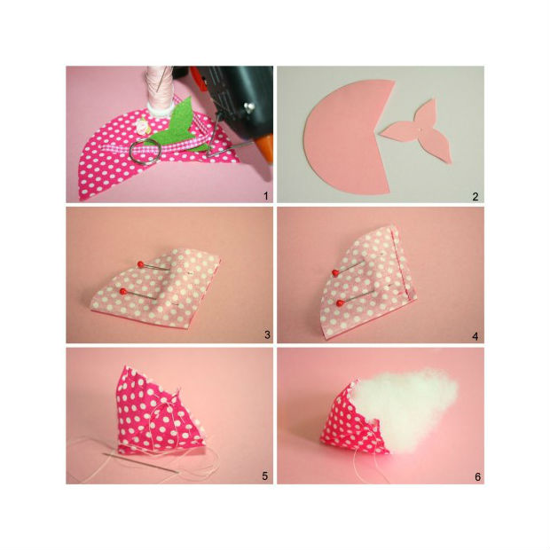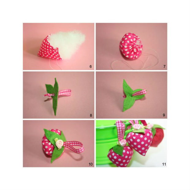 Costure-o e, em seguida, coloque o enchimento acrílico dentro do morango.