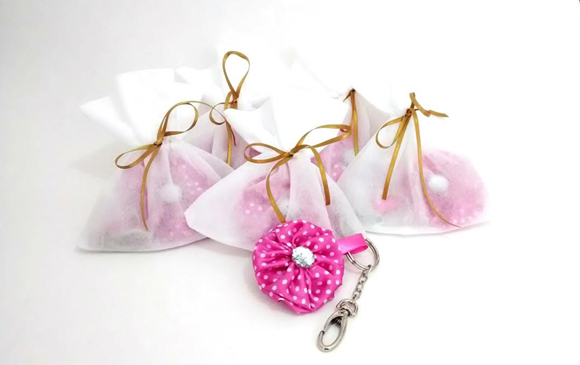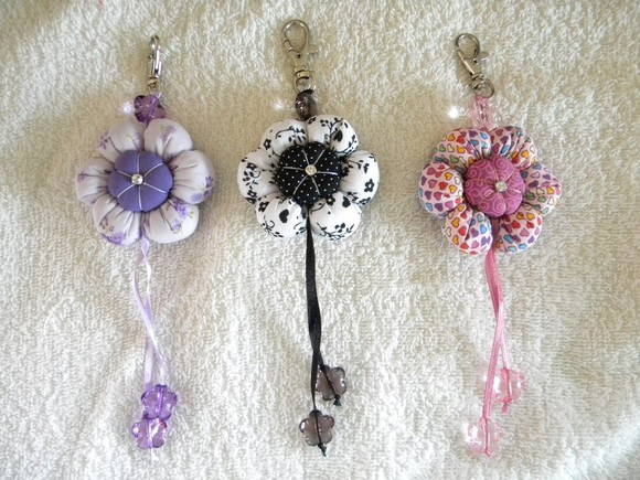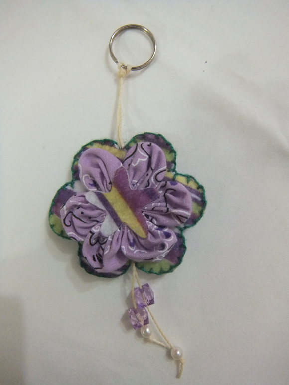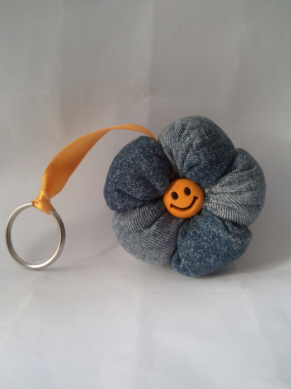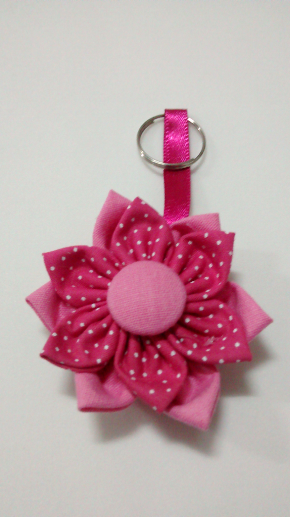 Os chaveiros de fuxico de flor são bem democráticos e podem ser encontrados em várias versões. A flor pode ser feita com fuxico tradicional, pode ser uma flor de fuxico com pontas e pode ainda ser uma flor com fuxico com enchimento.