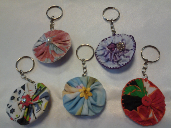 Confira o restante das 21 ideias de chaveiros de fuxico.