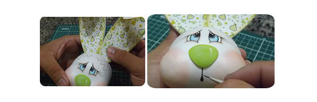Com a ajuda do molde, risque os traços do rosto do seu coelhinho.
