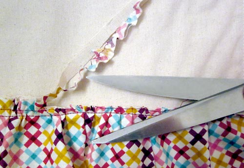 Em seguida, corte o excesso de tecido.