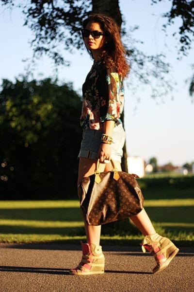 Shorts também podem ser ótimas companhias para os wedge sneakers; para isso basta combiná-los com camisas (se o short for jeans a camisa também pode ser jeans), blusas com estilo mais arrumadinho ou com blusinhas estampadas.