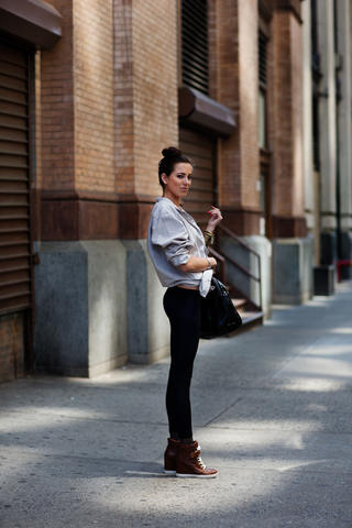 A forma mais clássica e básica de combinar roupas com sneakers é usar uma calça legging ou uma calça skinny, pois calças justas evidenciam ainda mais o wedge sneaker, e arrematar o look com uma blusinha básica ou descolada.
