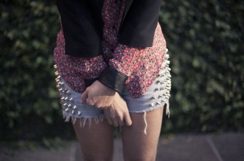 Tanto shorts quanto calças e saias (principalmente os modelos confeccionados em jeans) estão recebendo detalhes de tachinhas e spikes. E esta tendência não tem data para terminar, por isso se você ainda não possui nenhuma peça, customize algum short ou calça velha.