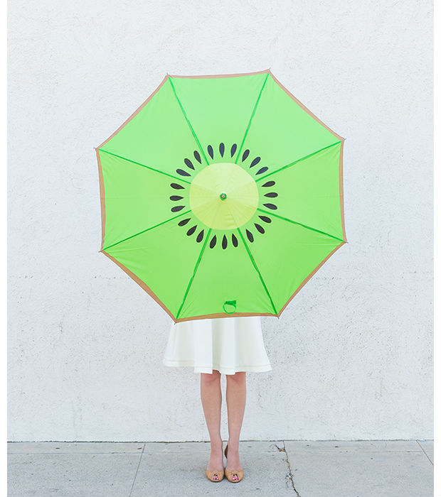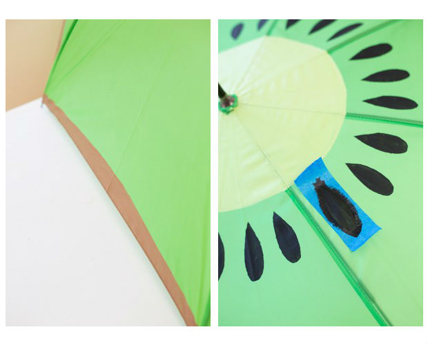 O passo a passo da sombrinha customizada de kiwi é o mesmo da melancia, modificando somente as cores.