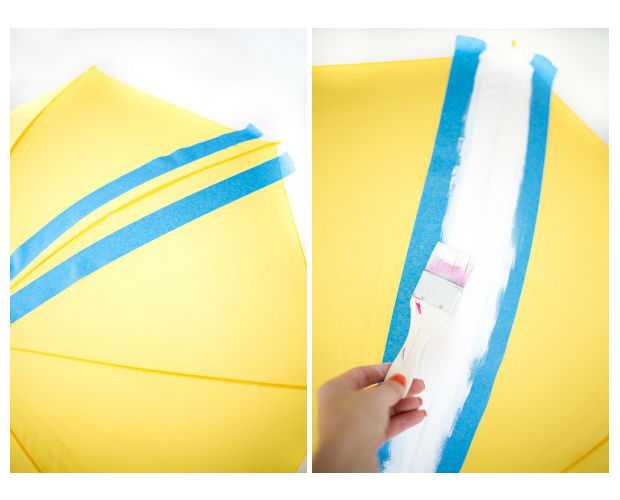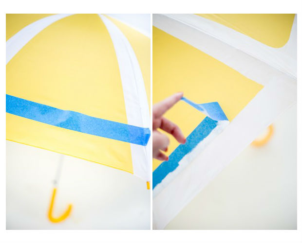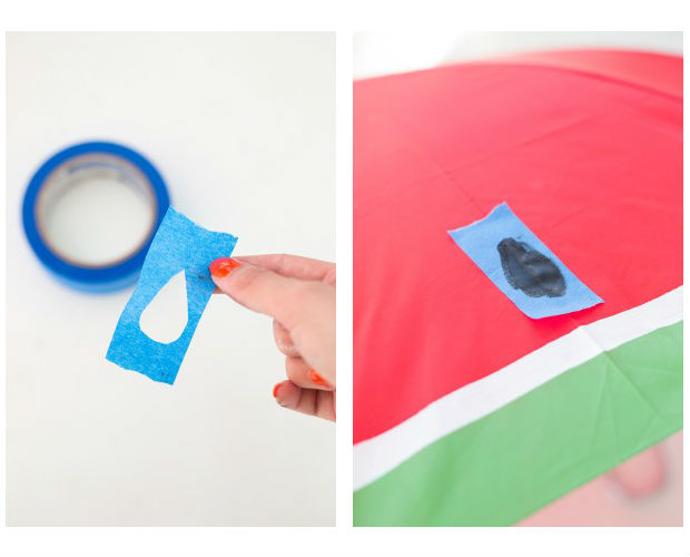 Aplique fita adesiva por entre as costuras da sua sombrinha, como na imagem acima.