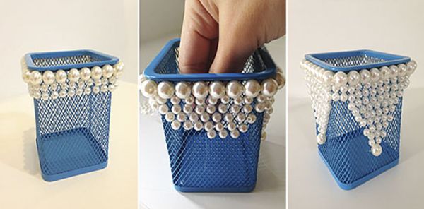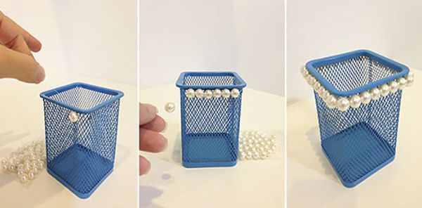 Customizar um porta-lápis de mesa utilizando pérolas é muito simples e você somente precisa de certo tempo livre.