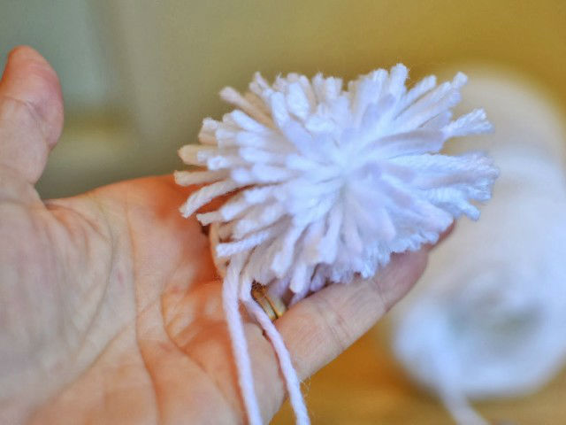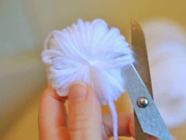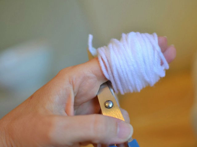 Corte com a tesoura a lã que estava enrolada no seu dedo, como na imagem acima.