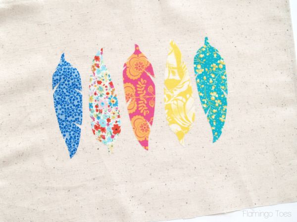 Logo após, com um ponto decorativo ou com o ponto em ziguezague de sua máquina de costura, contorne todas as penas, com a cor de linha de sua escolha.