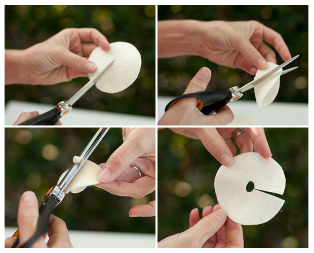 Faça um corte a partir da borda do círculo até o centro do mesmo, como na imagem acima.