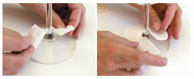 Meça a base da sua taça de vidro sobre o feltro branco.
