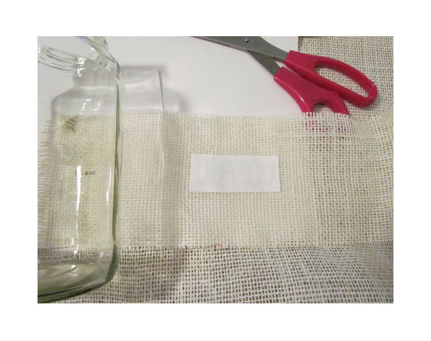 Recorte um pedaço de juta, de acordo com o tamanho do seu vidro ou como preferir.