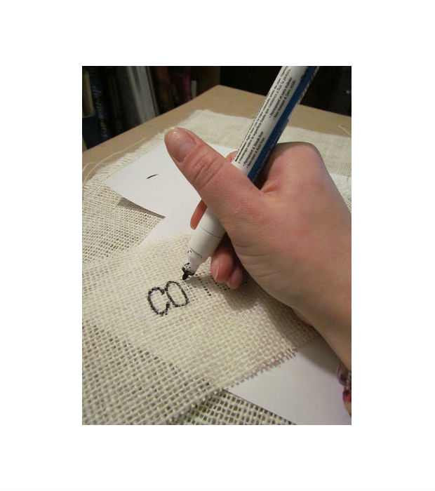 Com a caneta para tecido, copie o que está escrito no seu papel e contorne-o para fazer uma borda.