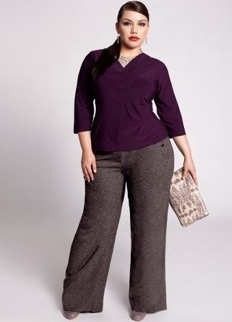 Mulheres gordinhas, com quadril largo ou coxa grossa, devem usar calças com modelagem reta ou pantalonas (que disfarçam a região do quadril), sem detalhes chamativos, com comprimento cobrindo o tornozelo, para alongar a silhueta, e com o cós a dois dedos abaixo do umbigo; não use calça skinny e calças capri, para não evidenciar ainda mais o quadril. As melhores cores são as mais escuras e fechadas, até mesmo para lavagens de jeans.