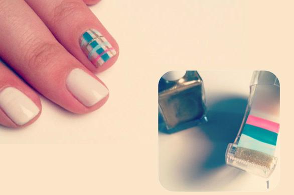Em seguida, com o auxílio de uma tesoura, recorte as listras e triângulos. Espere sua unha secar e aplique os adesivos da maneira que preferir, combinando a seu gosto. Aproveite este momento para colocar a imaginação para funcionar: crie desenhos e combinações como o xadrez, por exemplo. Experimente decorar apenas algumas unhas, intercale, tente com o indicador e o anelar.