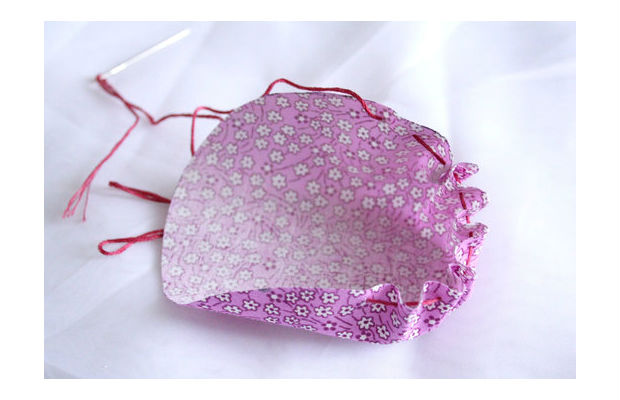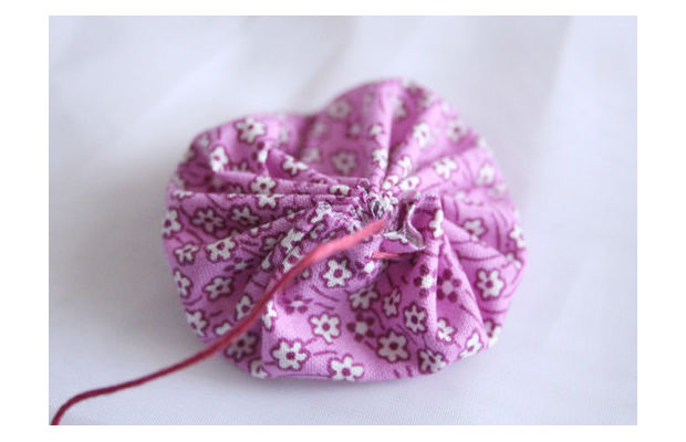 Para fazer o fuxico, você deverá transpassar a linha, como na imagem acima.