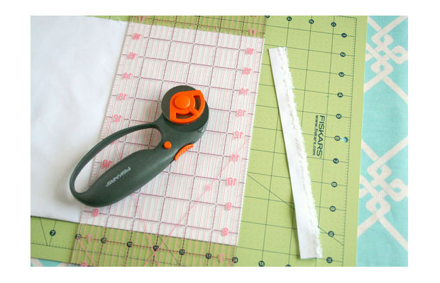 Agora, corte o tecido branco que formará a parte da frente da capa da sua almofada.