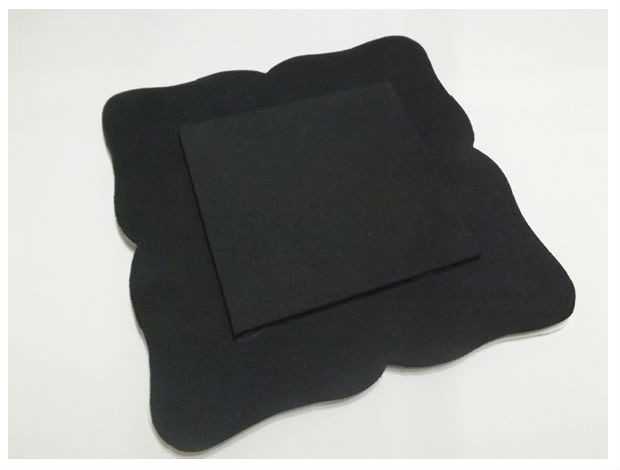 Recorte um pedaço de EVA de 5mm no tamanho 14cm x 14cm  cole centralizado na tampa.