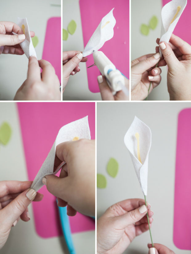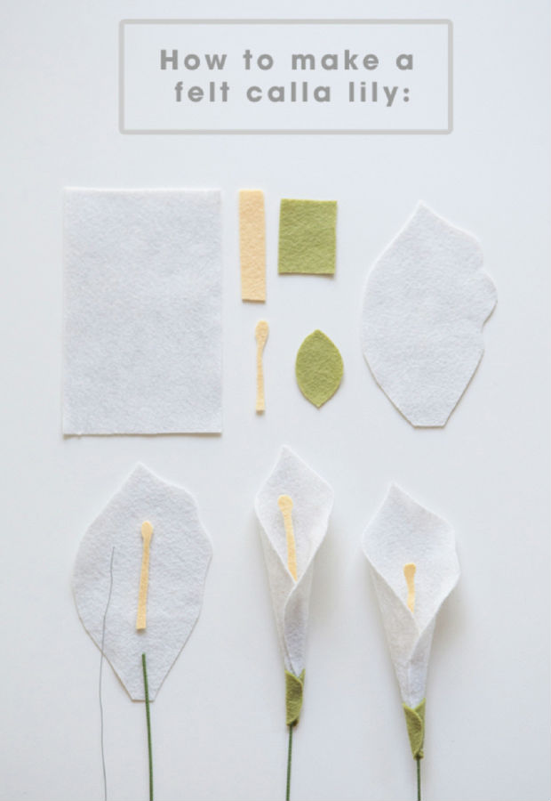• Fonte: http://somethingturquoise.com/2014/06/24/how-to-make-a-felt-calla-lily/
