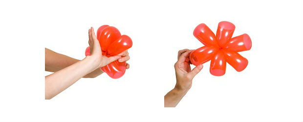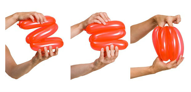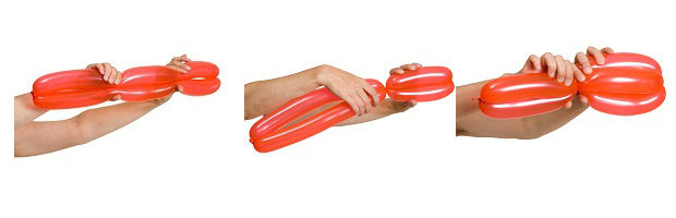 Junte essas partes da bexiga, como você pode conferir na imagem acima, e torça-as.