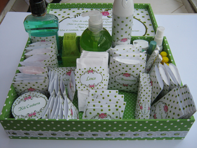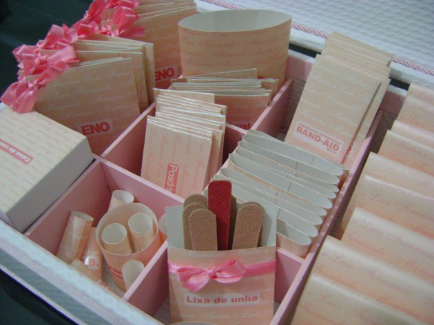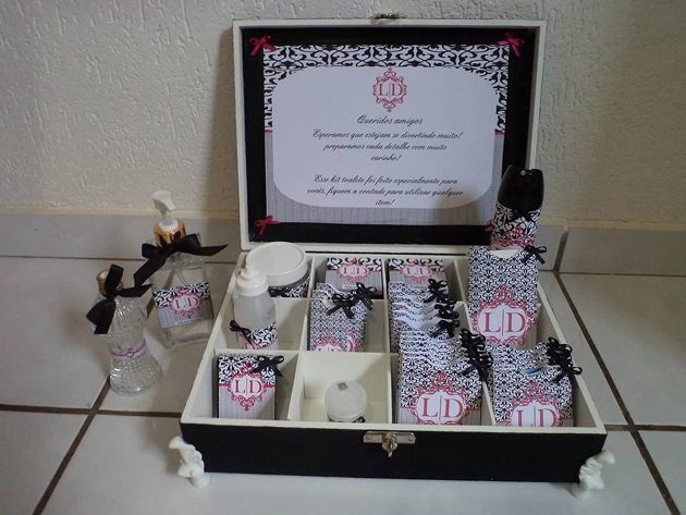Vale também acrescentar itens que você acha que as suas convidadas irão precisar. E se a festa for ao ar livre e durante o dia, não se esqueça do protetor solar e repelente nos dois kits.