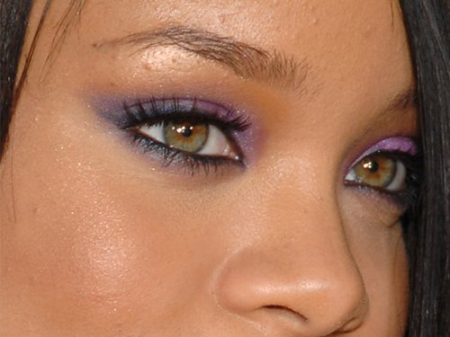 Logo após, com um pincel chanfrado, aplique uma sombra roxa bem rente aos cílios superiores e inferiores, dando mais ênfase aos cantos externos dos olhos, formando um “V”. E faça também um “puxadinho” gatinho bem suave com a sombra roxa nos cantos externos dos olhos.