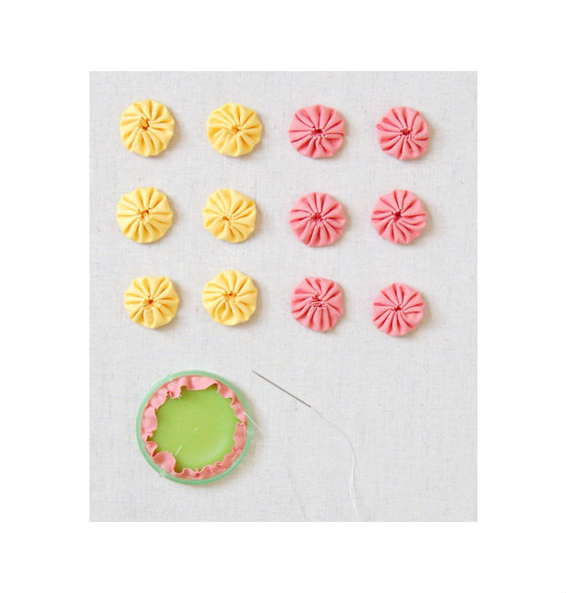 Use o pequeno fabricante de ioiôs para costurar o seu tecido, como na imagem acima.