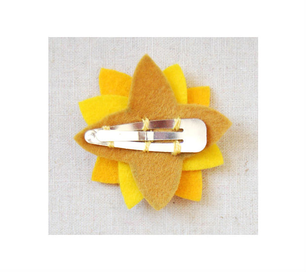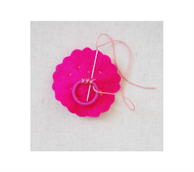 Costure um botão no centro da flor, usando linha de bordar.