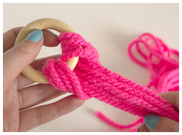 Separe 4 pedaços de fios de lã e dobre-os ao meio.