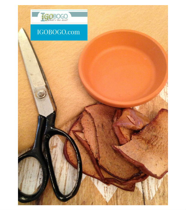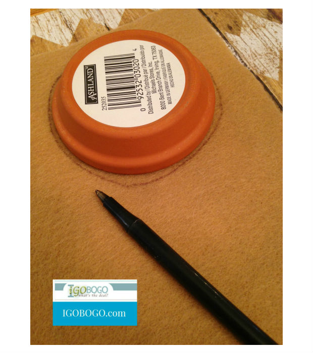 Enquanto você assa as maçãs, utilize o recipiente onde será montada a torta de feltro para fazer o molde do fundo da torta.