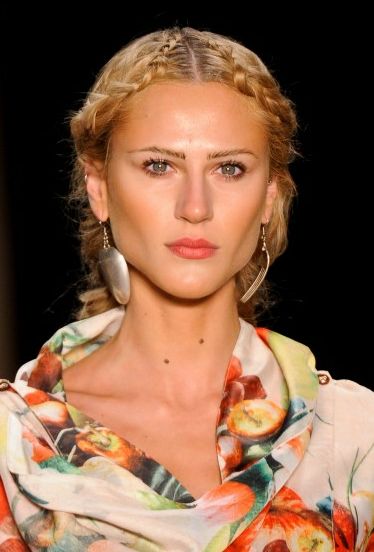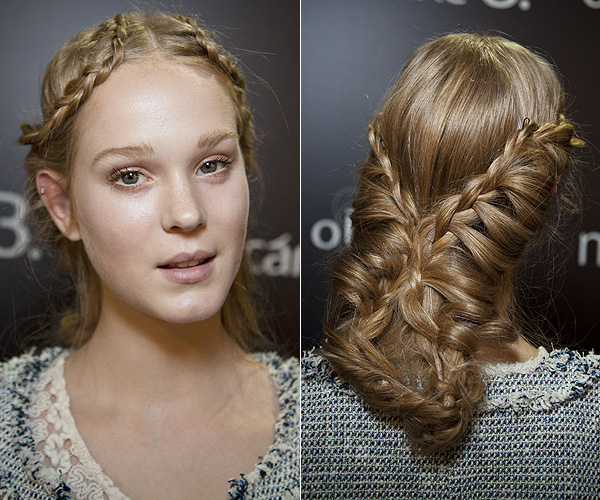 As tranças (todos os formatos e estilos) continuam em alta nesta temporada, e pelo que pudemos ver na última edição do Fashion Rio continuará também pela temporada primavera-verão 2012 2013. E a trança-destaque do Fashion Rio foi a trança à portuguesa, ou trança véu, apresentada no desfile de Nica Kessler, e inspirada em Portugal, na religião e na pureza feminina.