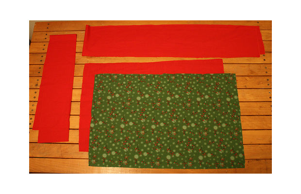 Recorte também uma tira grossa de tecido para o babado do avental e outra para amarrá-lo.