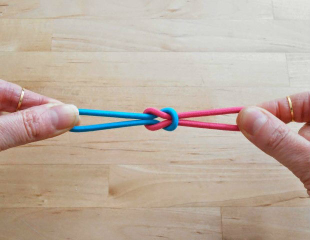 Dobre um dos rabicós ao meio, conforme você pode ver na imagem acima.