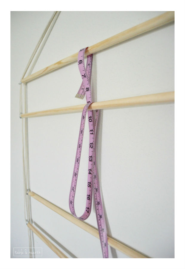 Dê um espaço pequeno de cordão e, logo, pendure outra cavilha.