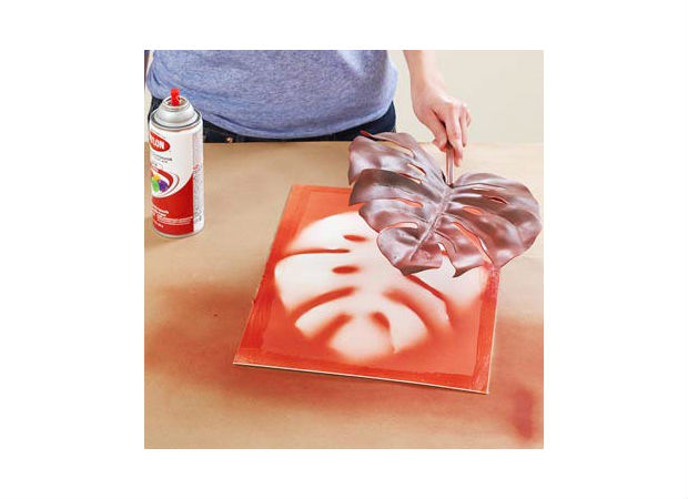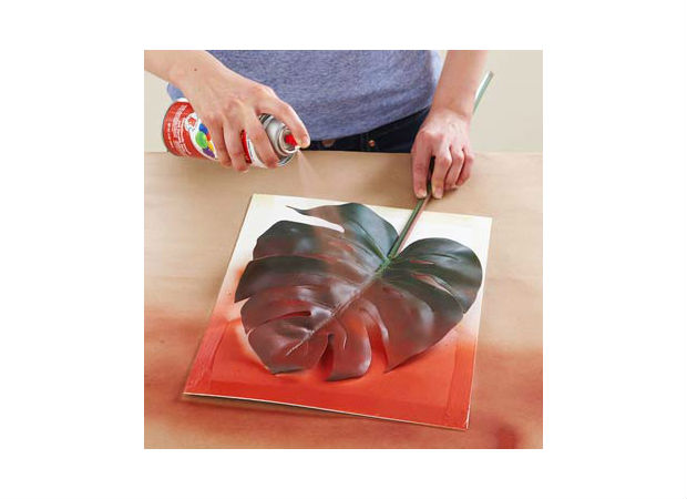 Logo, pinte todo o entorno dessa planta com tinta spray da cor da sua preferência.